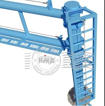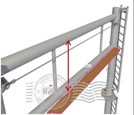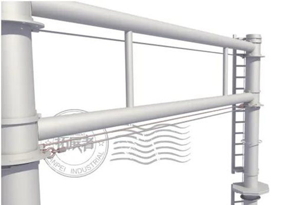 爬梯采用垂直横向抓手爬梯,垂直生命线设置在爬梯中间,方便攀爬的同时兼顾了上升止坠器的行进位置,便于使用者操作。